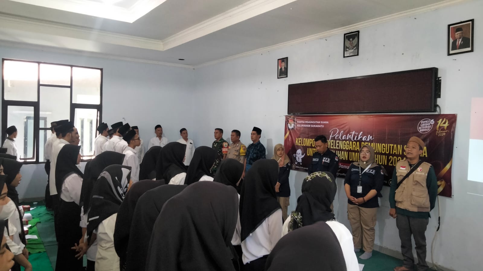 Pelantikan anggota Kelompok Penyelenggara Pemungutan Suara (KPPS) untuk Pemilihan Umum (Pemilu) tahun ini bertempat di Aula Kantor Kecamatan Majasari dengan di hadiri oleh Andri Irawan Lurah Kelurahan Sukaratu, Sertu Saian Babinsa Kelurahan Sukaratu, Bripka Edi Siswanto Bhabinkabtibmas Kelurahan Sukaratu serta TB. Moch. Reyhand Destaqui Pengawas Desa/Kelurahan, acara pelantikan anggota Kelompok Penyelenggara Pemungutan Suara (KPPS) tersebut berjalan dengan lancar dan penuh khidmat.